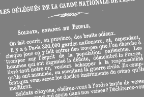 La Garde Nationale se sentant menacée de désarmement, « avait cherché le salut dans l'application du grand principe socialiste : l'autonomie et la fédération, c'est-à-dire l'indépendance du groupe et l'association libre des groupes entre eux ».(Arthur Arnould - membre de la Commune - 4e arrdt.).