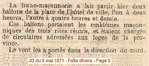 Le 1er août 1871, le Grand Maître Léonide Babaud-Laribière qui a succèdé au Général Émile Mellinet (qui a passé le temps de la Commune à Versailles avec Thiers) envoie une circulaire à toutes les loges du GODF,