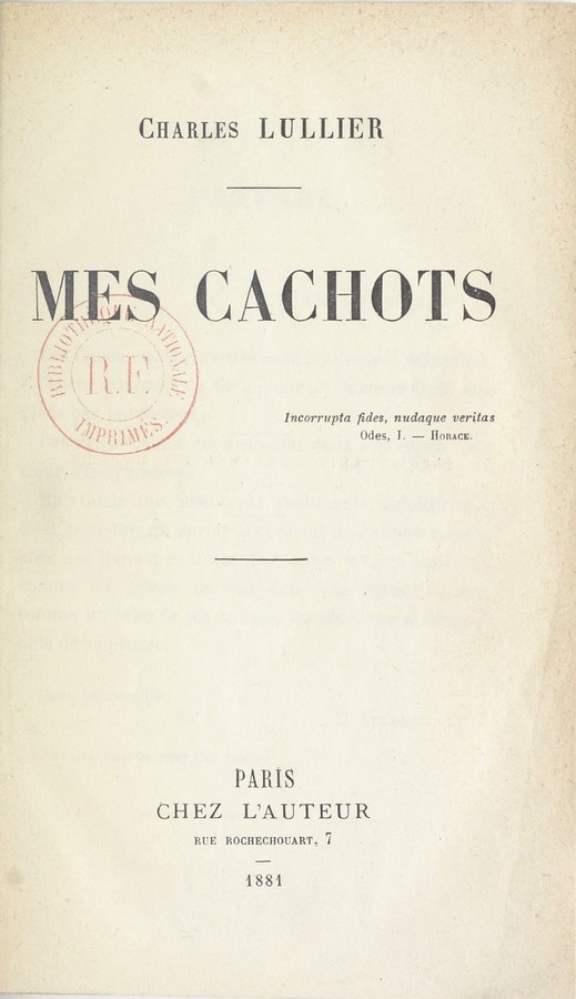 Charles Lullier, Mes cachots, Paris chez l’auteur, 7 rue Rochechouart, 1881 (source : https://gallica.bnf.fr/ark:/12148/bpt6k6481190f#%20 )