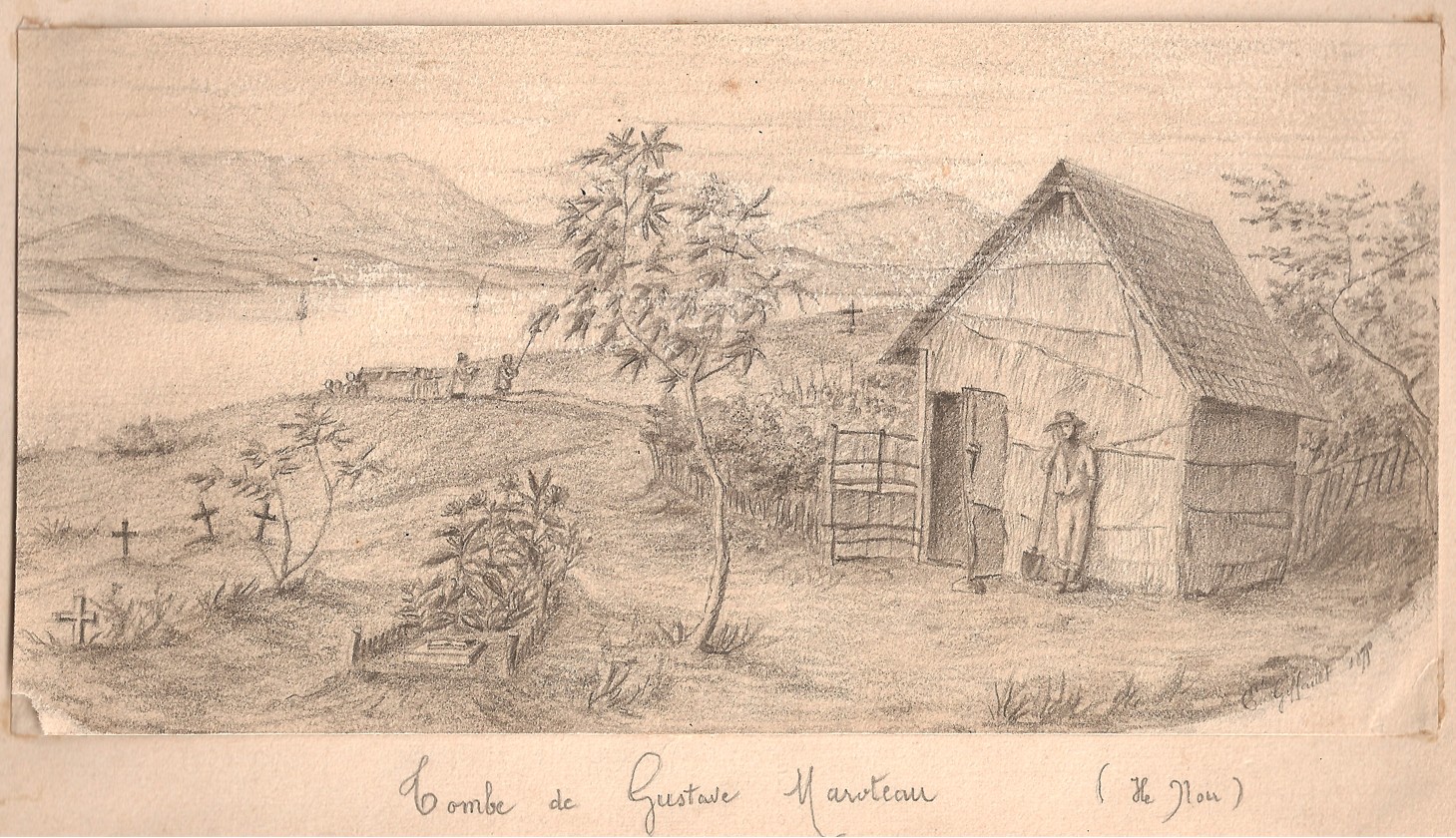 Maroteau mourut le 18 mars, soit quatre ans après le début de l’insurrection parisienne, mais, étant né le 28 juillet 1849, il n’avait pas encore 26 ans... Il fut enterré dans un coin du cimetière des forçats « sur le haut d’une côte où la vue est admirable et je pensais à lui qui aimait tant les belles choses », précise Giffault qui nous a laissé un croquis de sa tombe.